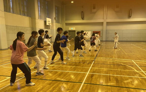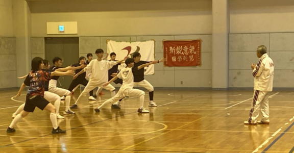 廣岡先輩の指導でフットワークを学ぶ